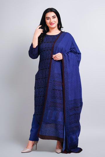 Immerse yourself in the perfect fusion of tradition and modernity with this exquisite straighthand Bhag hand block with organic color Printed kurta pant and duppata suit set. The elegant organic cotton fabric and embellished cut dana hand work on Front on the top and printed sleeves create a captivating appeal. The combination includes pant & duppata that harmonise with the look and pattern of the kurta. Complete your look with the dazzling allure of sparkly accessories and a pair of exquisite sandals, allowing you to stun the crowd.
