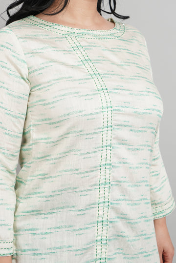 Silk Linene Kurti with Kantha work on neck and front & sleeves